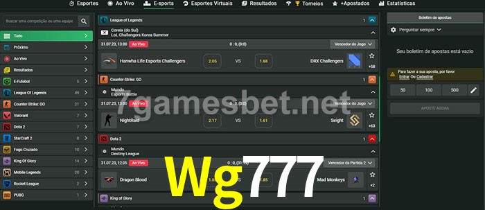O Wg777 oferece uma grande seleção de opções de apostas em e-sports com probabilidades competitivas